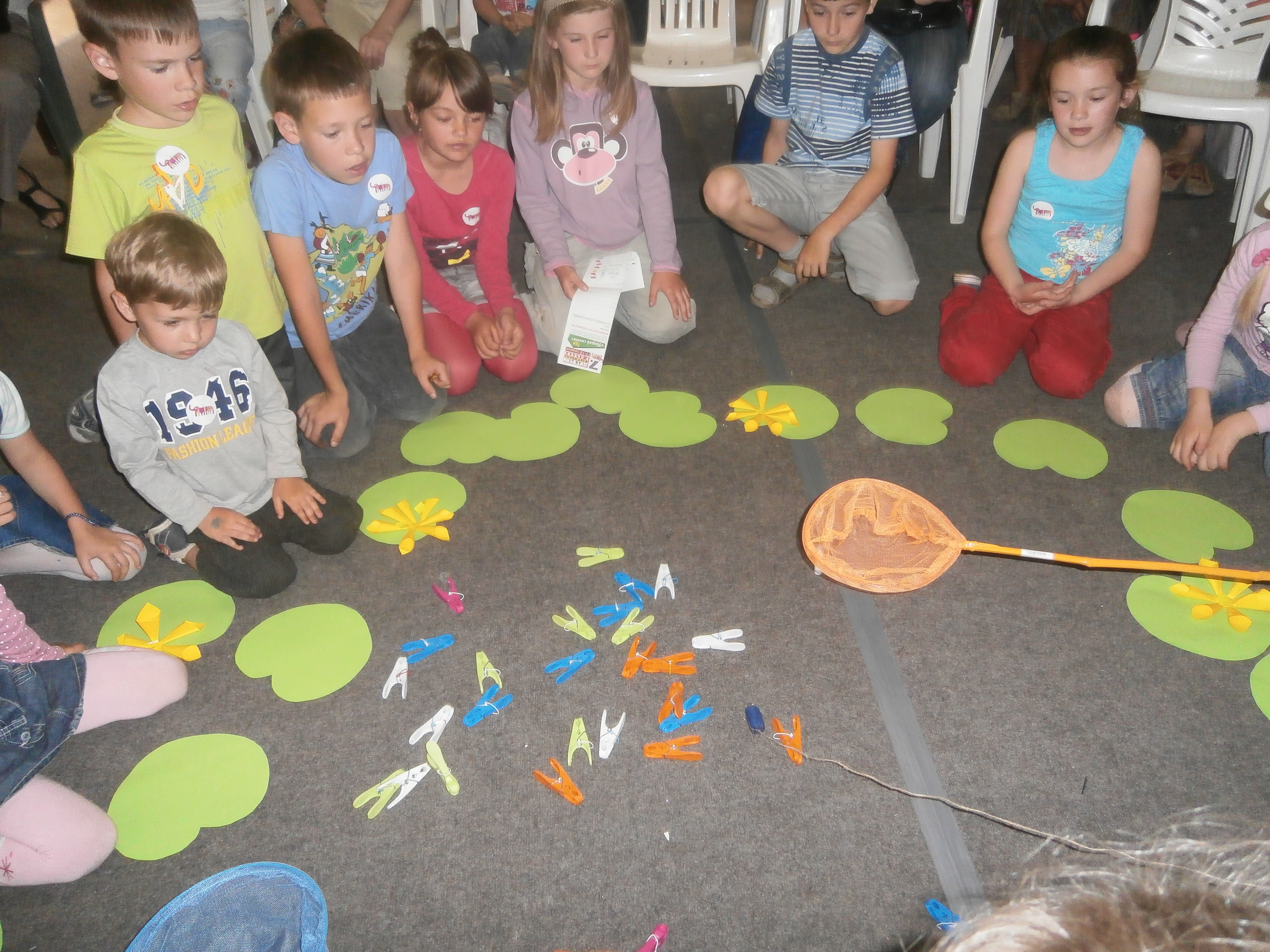 дітям: навчали з паперу складати шапку для мандрівок, ставити намети, вгадувати звуки природи, грати у рольові ігри, ловити рибу, виготовлену зі звичайних прищіпок. Наприкінці заходу усіх учасників об’єднала весела гра-полька.