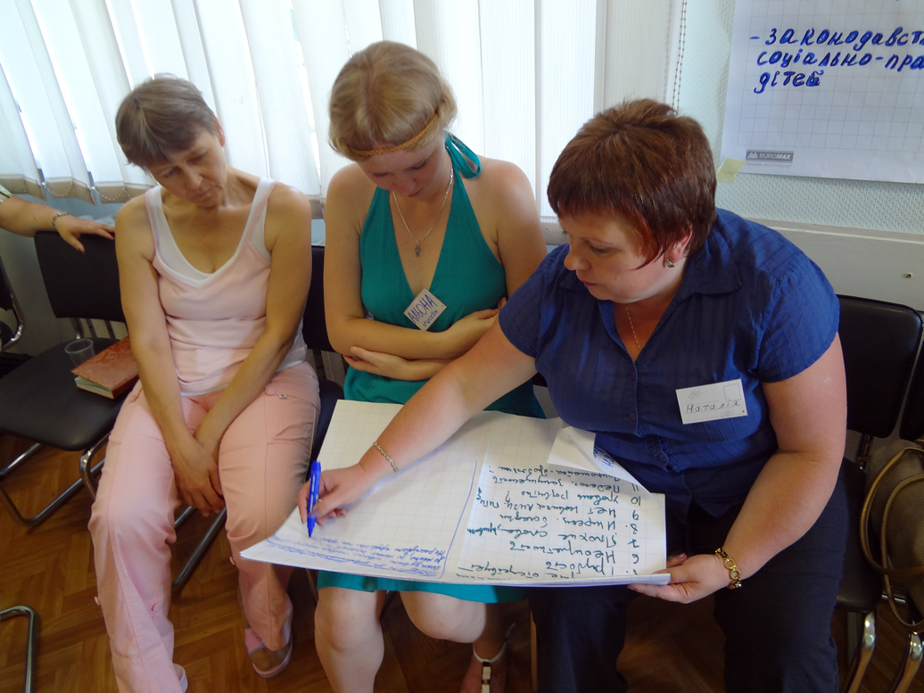 Другий день тренінгу було присвячено розгляду місця сімейного патронату в державній системі підтримки сімей з дітьми, а також соціально-правових аспектів здійснення патронату. Учасники з’ясували причини, внаслідок яких діти можуть потребувати соціальної підтримки, як дитина набуває відповідного соціального і юридичного статусу, які проблеми можуть виникнути внаслідок попередніх умов і досвіду життя дитини.